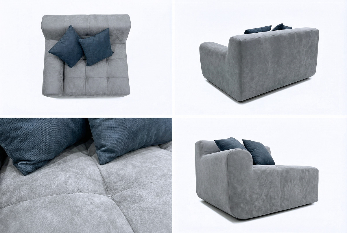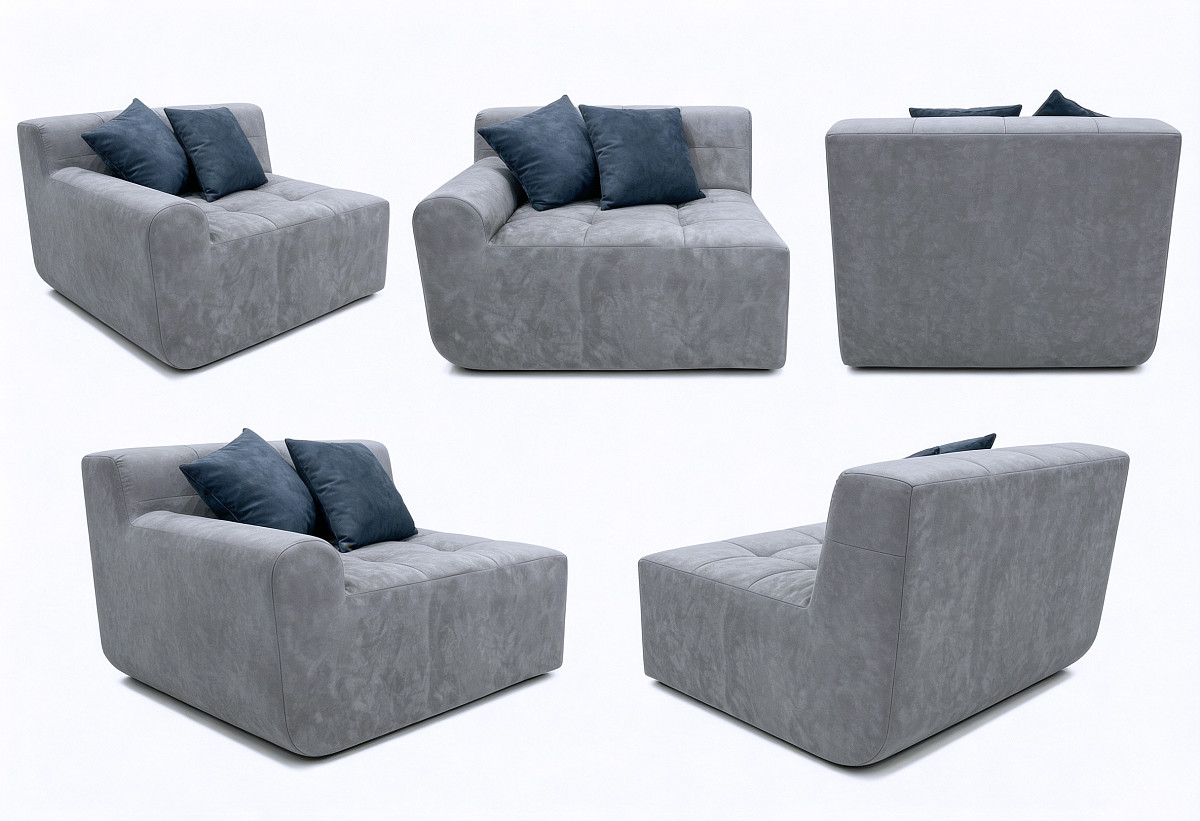 К каждому модулю прилагаются две контрастные подушки (согласно ТРТ), которые подчёркивают выразительность дизайна и позволяют освежить интерьер. Благодаря отсутствию жёсткого каркаса «Оазис» идеально подстраивается под форму тела, даря ощущение невесомости и максимального комфорта.