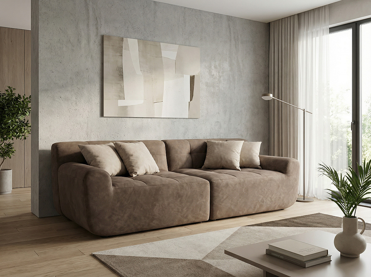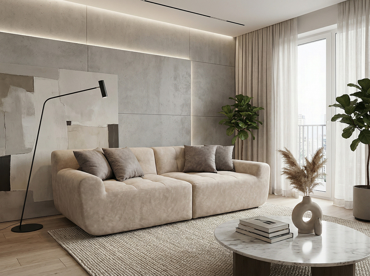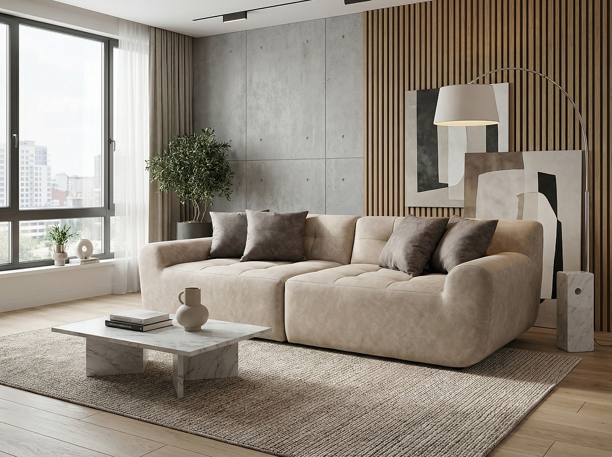 Диван beyosa Oasis (Оазис) — это воплощение уюта и современного стиля. Его мягкие, обволакивающие формы создают атмосферу расслабления, а премиальный велюр с деликатным принтом под камень добавляет интерьеру утончённости и естественной гармонии.