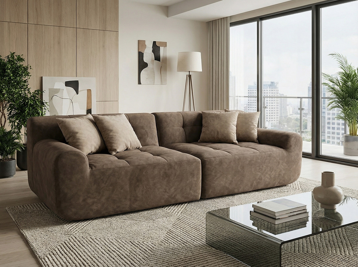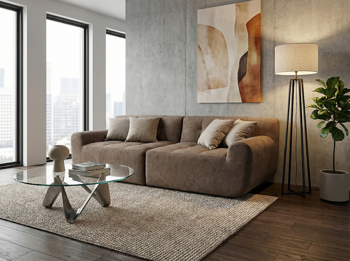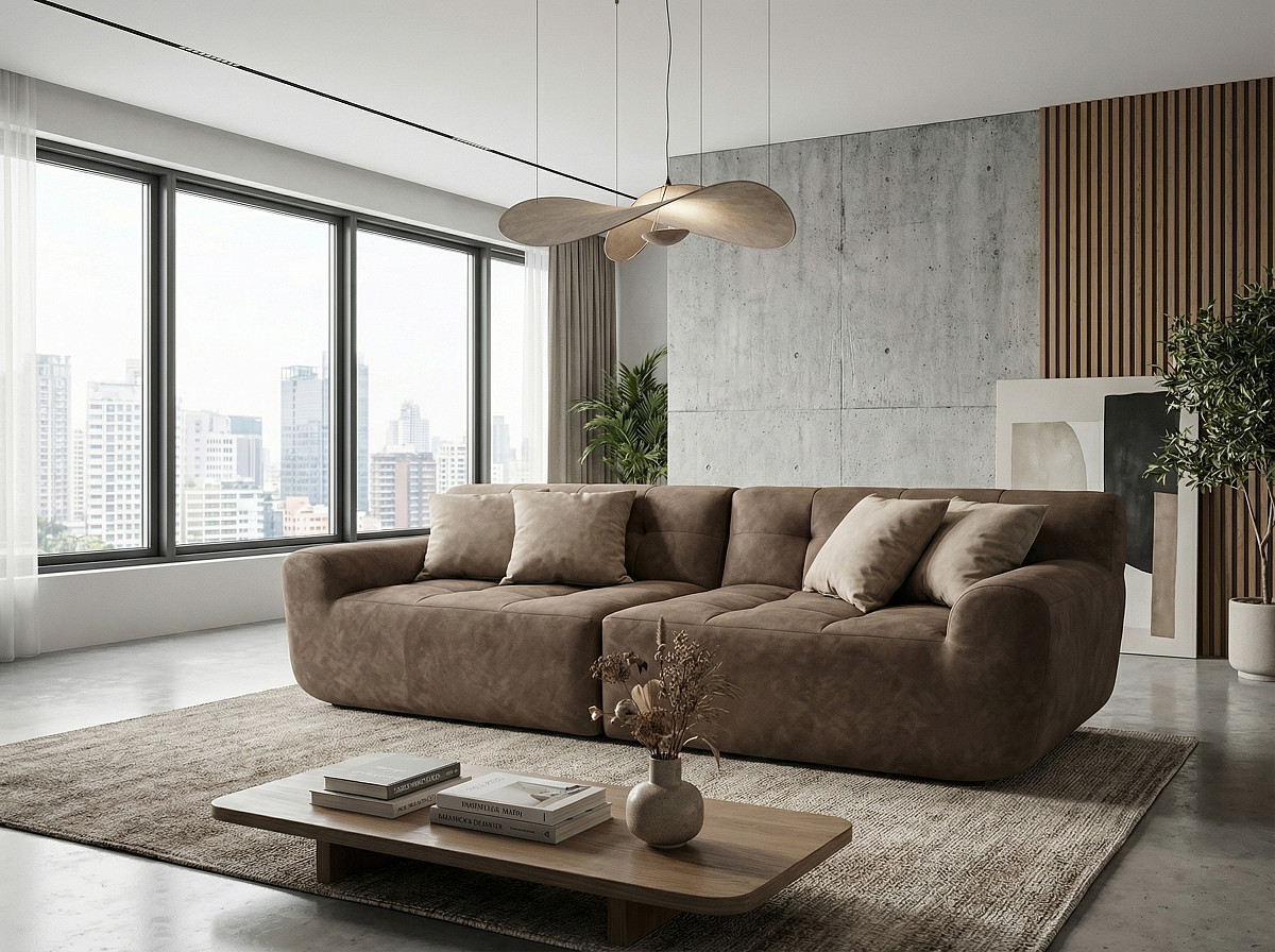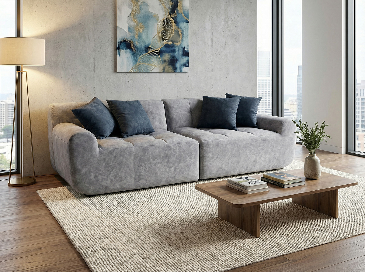Диван beyosa Oasis (Оазис) — это воплощение уюта и современного стиля. Его мягкие, обволакивающие формы создают атмосферу расслабления, а премиальный велюр с деликатным принтом под камень добавляет интерьеру утончённости и естественной гармонии.