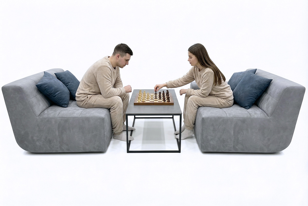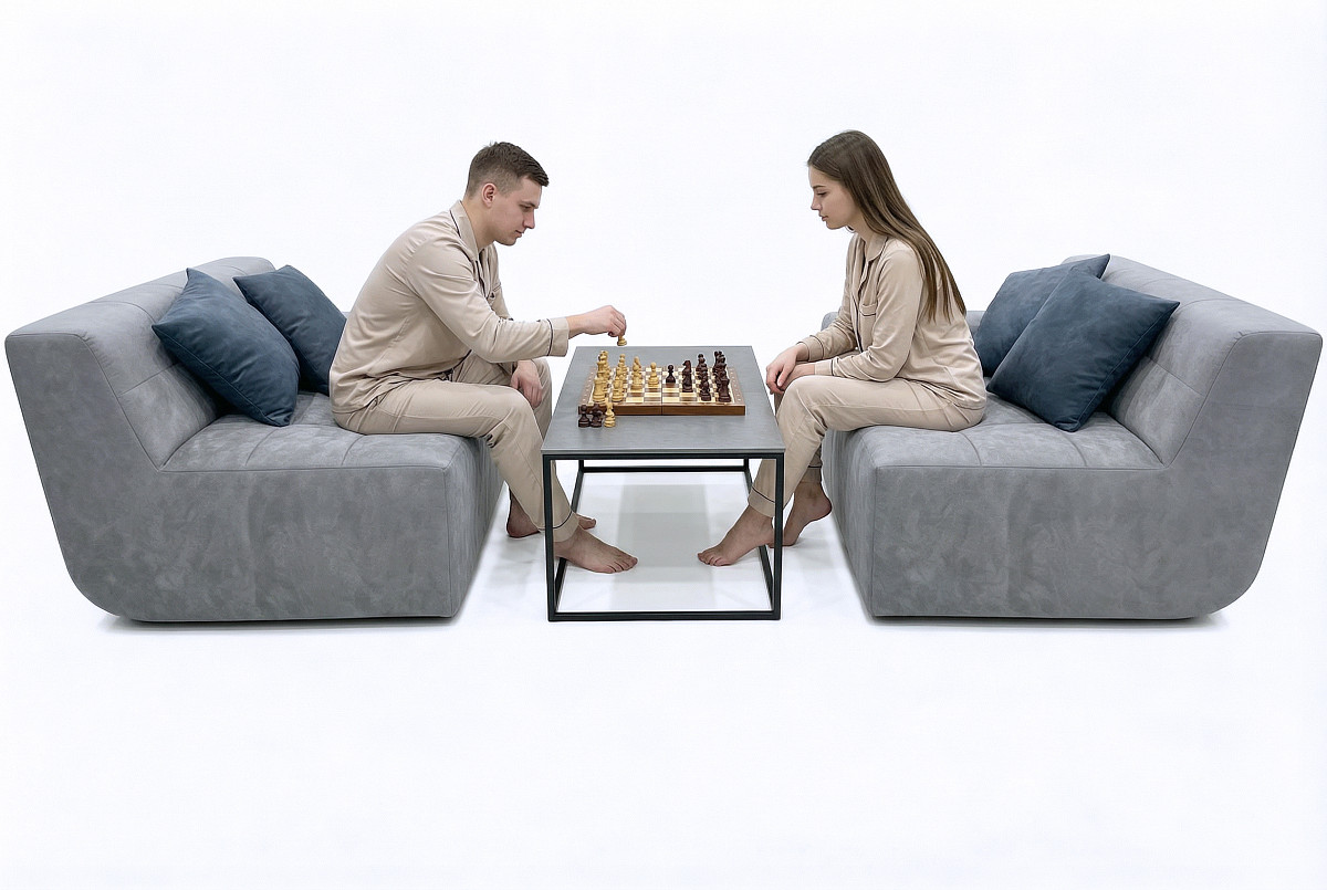 Диван состоит из двух независимых модулей, которые можно легко перемещать, создавая индивидуальные композиции для любого пространства.