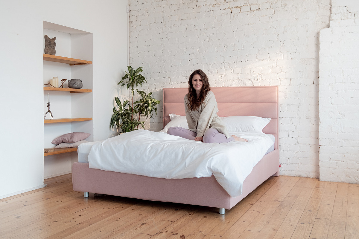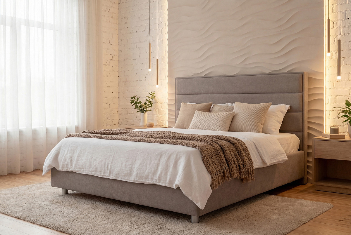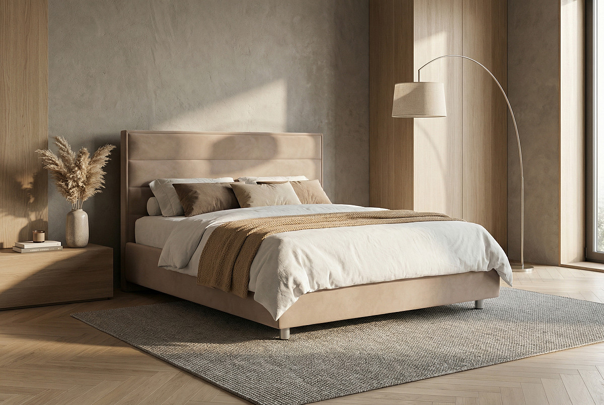 Современная и функциональная кровать Amely (Амели), которая сочетает в себе стиль и практичность. Высокая прямая спинка с горизонтальными объёмными вставками придаёт мебели выразительный и актуальный вид, а высокие ножки обеспечивают лёгкость уборки – под кроватью легко пройдёт робот-пылесос.